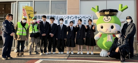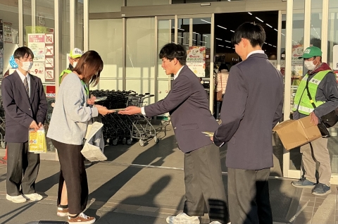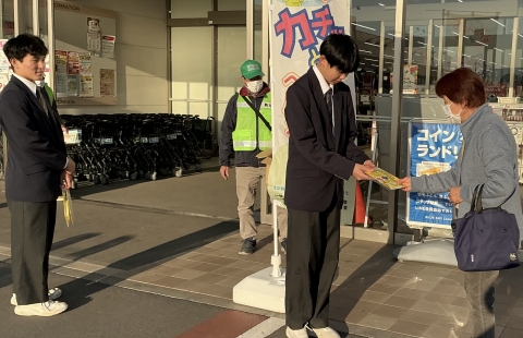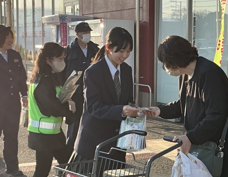 本日午後、寄居警察が行う「特殊詐欺防止キャンペーン」に本校生徒が参加し、ベイシアで地域の方々に呼びかけを行いました。