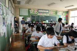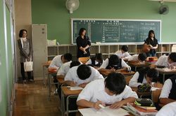 本日、1校時から3校時までの授業参観(フリー)を実施しました。朝から約220名の保護者の方々方々が来校され、授業や校内、校庭の様子をご覧になりました。また、3校時には体育館で3年生の修学旅行説明会を実施しました。