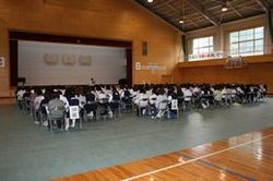 生徒会引き継ぎ式を行いました。新生徒会の役員のみなさん、花園中学校をよりよくするためにがんばっていきましょう。旧生徒会の役員のみなさん、今までありがとうございます。