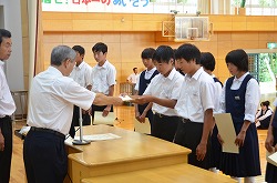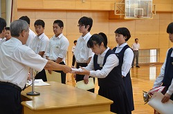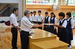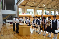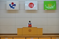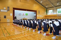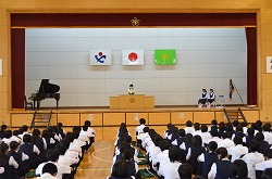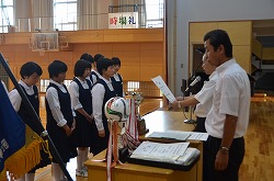 2学期始業式を行いました。落ち着いた雰囲気の中、各学年の代表が2学期の抱負を発表しました。その後、県大会の賞状の伝達を行いました。この2学期も、生徒たちの活躍を期待できる始業式でした。