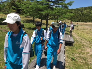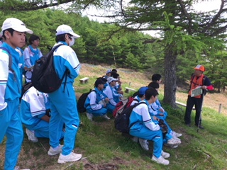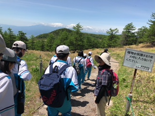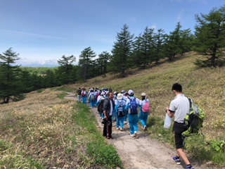 すばらしい晴天に恵まれ、湯の丸高原池ノ平湿原でのトレッキングが無事終了しました。途中、高山植物の女王「コマクサ」も見ることができました。トレッキング後は、おいしい空気をおかずに、昼食を取りました。この後、嬬恋村の研修センターに向け出発です。