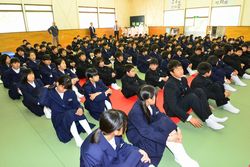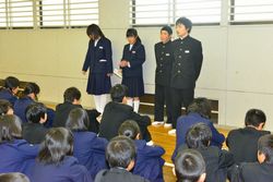 今年度の学級委員になった生徒たちが、各学年集会で決意表明をしました。「あいさつ日本一を実現します。」とか「楽しい充実したクラスにします」など豊富を力強く発表しました。それぞれのクラスがすばらしい集団になるようにがんばってくださいね。