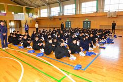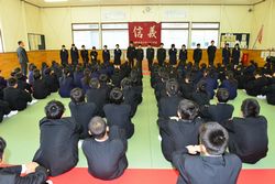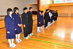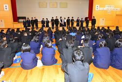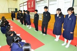 生徒会引き継ぎ式を行いました。新生徒会の役員のみなさん、花園中学校をよりよくするためにがんばっていきましょう。旧生徒会の役員のみなさん、今までありがとうございます。