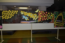 美術部のみなさんが作り上げてくれた横断幕を、美術部のみなさんが自分たちの手で設置してくれました。また、音楽会広報部のみなさんが学級で作成したイメージ画(ひとりひとりの想い)をロビーに設置してくれました。合唱だけでなく、横断幕やイメージ画もお楽しみください。