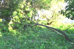 学校に行ってみると、すでに教頭先生が見回ってくれていました。私もカメラを片手に見回ってみました。銀杏の実がたくさん落ちていました。体育館前の栴檀(センダン)の木が倒れていました。美術室の裏山の檜が1本おれていました。皆様の家の被害はいかがでしたでしょうか?