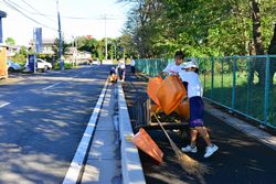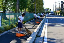 校門付近が、落ち葉や小枝で大変汚れていたので掃いていますと、テニス部の男子生徒が協力してきれいに清掃をしてくれました。お手伝いしてくれる気持ちに感謝です。思いやり賞です。
