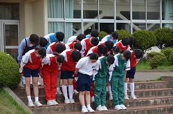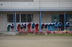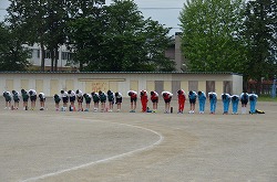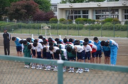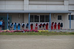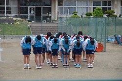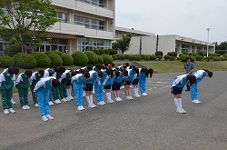 本年度最初の「Happy Fri.」を小雨の中、実施しました。「Happy Fri.」とは、全ての部活動が校舎前や校庭に整列し、部員全員で練習・大会・コンクール・作品制作への意気込みを、「おねがいします」と校長先生に大声で伝える行事です。どの部活動も、大きな声で、しっかりと取り組むことができました。これからも、部活動に全力で取り組んでください。