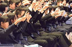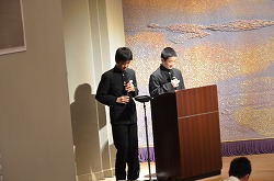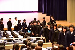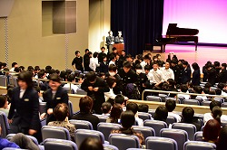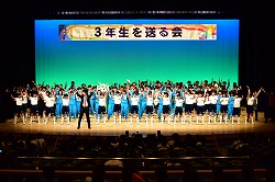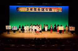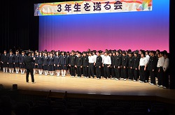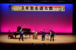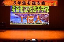 4日(金)13時より花園文化会館「アドニス」で、三年生を送る会を実施しました。第1幕では、ムジカトウキョウ・サロン・オーケストラさんをお招きし、「音の空間 体験&発見~クラッシックって楽しい」を鑑賞しました。直に聞く、楽器から奏でられる音楽に感動しました。特別企画として、本校職員の佐藤ユカリ先生がカッチー二の『アヴェ・マリア』を熱唱しました。プロ級の美声と音量が会場内に響き渡り、全員が聞き入ってしまいました。とても感動しました。第2幕では、1年出し物「1年生からのエール」、2年出し物「花園ロケット~夢にまっすぐ~」、思い出のスライド+ビデオレター、3年生の部を行いました。1・2年生は3年生への感謝の気持ちを劇に表し、ビデオレターでは転出等された先生方から3年生へ「はなむけのことば」をビデオレターとして流しました。最後に、3年生より花園中再発見「ダーツの旅(花園中版)」を劇で行い、1・2年生に感謝の気持ちを込めて「ガーネット」を3年生全員で合唱しました。アドニス全体がみんなの「感謝の気持ち」でいっぱいに包まれた空間となりました。三年生のみなさん、残り少ない花園中学校の生活を実り多い時間としてください。そして、最高の「卒業式」にしましょう。