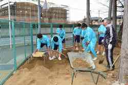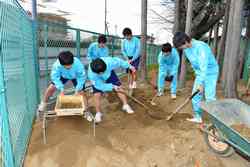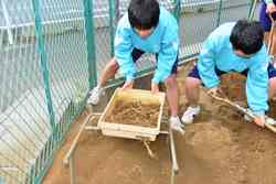 清掃時間を活用して、3年生がソフト部グランド裏に花壇を作っています。道沿いの花壇ですので地域の方が喜んでくださるとよいのですが。