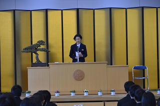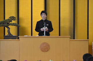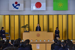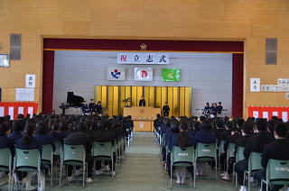2月2日(金)、多くのご来賓の皆様のご臨席をいただき、花園中学校 第10回 立志式 が本校体育館で行われました。2年生108名が、自分の将来の夢や目標を、さらに、それに向かってこれから努力していきたいことを、1,3年生や2年生の保護者、地域の方々の前で力強く発表しました。今回は、埼玉県進路指導・キャリア教育研究会の研究委嘱を受け、その発表もかねて、開催しました。そのため、深谷市はもとより、熊谷市や寄居町、さらに近隣の高等学校の先生方も多数参加くださいました。参観された皆様からは、「大変すばらしい発表でした」「自分の夢を、原稿なしで堂々と発表している姿に感動しました」などの感想を多くいただきました。これからも「夢とこころざしをもち、まごころと思いやりのある花中生」の育成を目指し、取り組んで参ります。