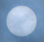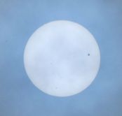 雲の合間から、金星の太陽面通過が観測できました。残念ながら花園中ではほとんどの生徒は観察できませんでした。