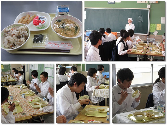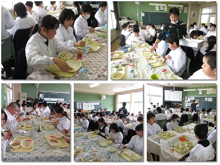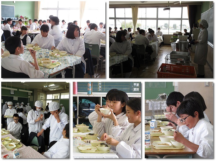 栄養士の先生、調理員の皆さんがおいしい給食を作ってくださりました。みなさん出来たての給食をおいしくいただいていました。