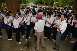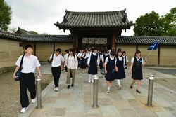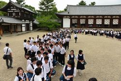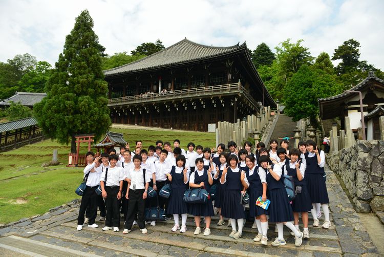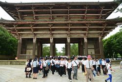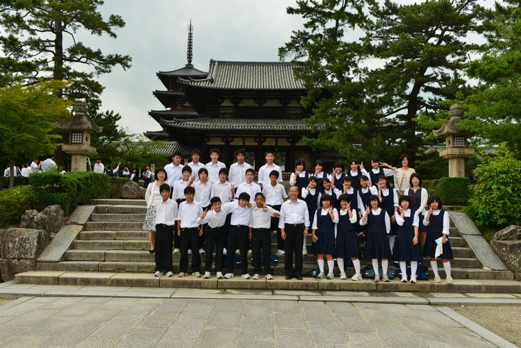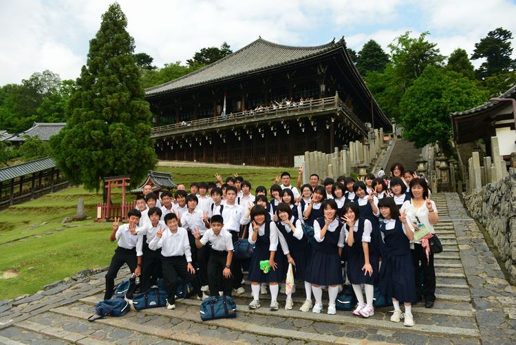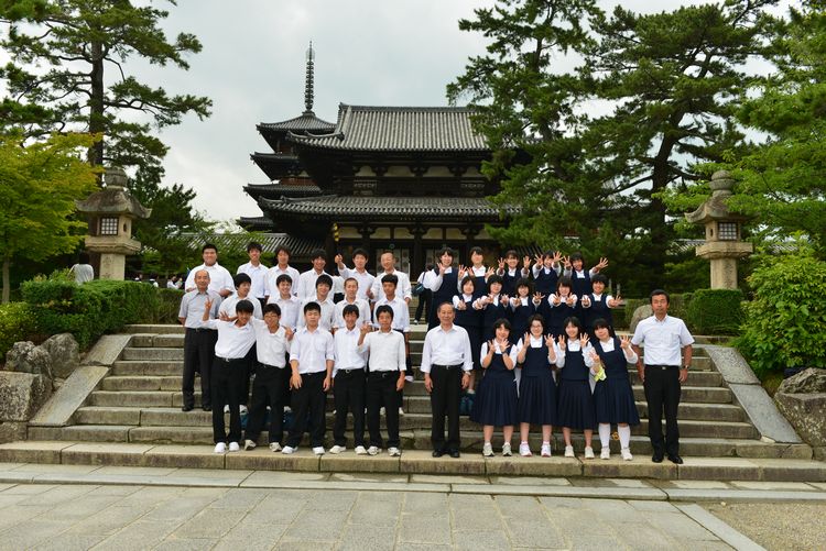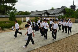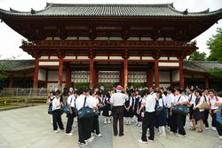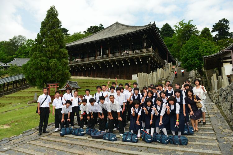 まずまずの天気に恵まれ、修学旅行一日目が無事終了しました。熊谷駅集合、新幹線で東京、東京から京都まで、京都からバスに乗って奈良へ。法隆寺、東大寺を見学し、予定どおりに洛南会館につきました。生徒たち元気にあいさつができ、地・場・礼もしっかり守れて、楽しい一日目でした。