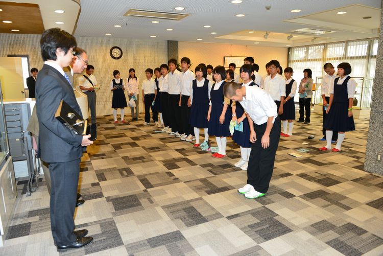 生徒会引き継ぎ式を行いました。新生徒会の役員のみなさん、花園中学校をよりよくするためにがんばっていきましょう。旧生徒会の役員のみなさん、今までありがとうございます。