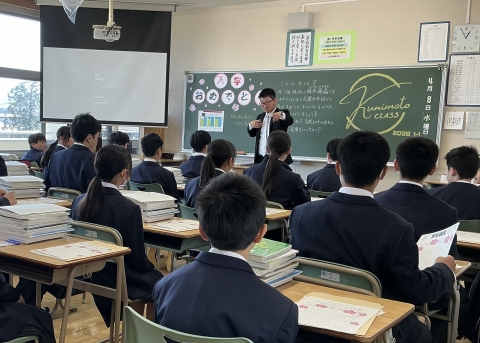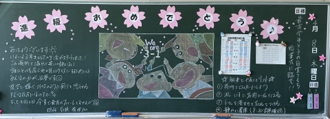 修了式が行われました。先生方からの話にありましたが、春休みは安全に気を付けて過ごしてください。4月8日、元気に登校してくることを願っています。