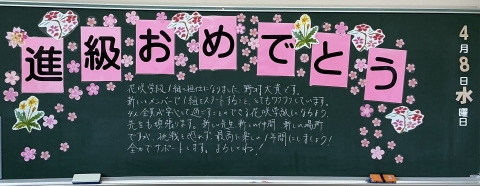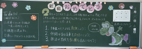 80年目の新年度がスタートしました。2,3年生始業式では,2年生代表が「後輩の手本となる言動を行いたい」,3年生代表が「1つ1つの言動が学校の雰囲気を創っていることを意識していきたい」と学年としての新年度の誓いを述べました。各学級では,活気あふれる学級開きが行われました。3年生は,午後の入学式に向けての準備も順調に行なっていました。